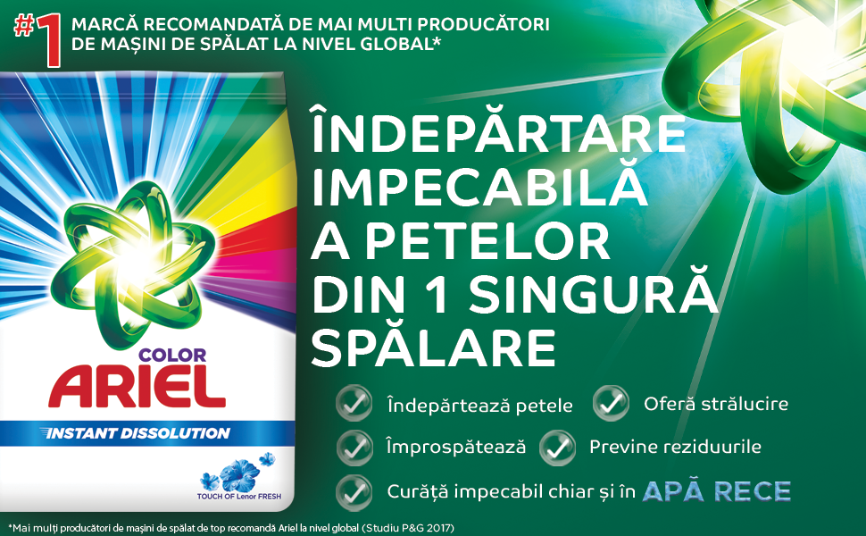 Cu enzime de origine naturala: Detergentul pudra Ariel contine enzime de origine naturala. |